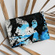 Eine abstrakte bunte blaue Schwarzweiss-Mädchenmalerei. Ein einzigartiger Entwurf auf schwarzem Hintergrund. Die perfekte künstlerische Geschenkidee für jedermann bei irgendeiner Gelegenheit.
