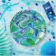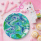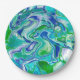 Abstrakte blaue und grüne Marmorflüssigkeit Pappteller