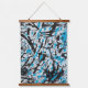 Abstrakte blaue und schwarze Pinselstriche Wandteppich Mit Holzrahmen