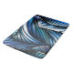 Abstrakte blaue Welle kombiniert Kurven und Blautöne, die wie Bewegung aussehen. Originelles lineares Design.