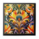 Fügen Sie Ihrer Zuhause eine Touch Klasse mit einer Art-Deco-Blume-Keramik-Kachel hinzu. Dieses botanische Design hat die fließenden, natürlichen Linien, die die Grundlage des Art-Déco-Stils. Die zahlreichen Blau-, Gelb- und Orangetönen verleihen jedem Raum einen eleganten Stil. Diese Keramik ist ideal für einen Backsplash, Wandkunst oder als eigenständiges Kunstwerk.