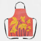 Abstrakte Blume Schürze mit einer geometrischen Vektorgrafik von hübsch blühenden, lebhaften gelben Pflanze mit dunkelblauen Stielen über korallenrosa Hintergrund. Diese dekorative Blumenkunst bringt Frühlings- und Sommerstimmung.