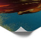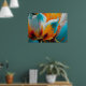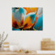 Abstrakte Blüte in Orange und Blaugrün Poster