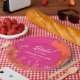 Modernes, abstraktes Retro-Design in rosa, orange und weiß. Brautparty für Text, Textfarbe, Textfarbe