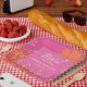 Modernes, abstraktes Retro-Design in rosa, orange und weiß. Brautparty für Text, Textfarbe, Textfarbe