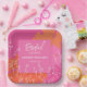 Abstrakte Blütenbrücke in Pink und Orange Daisy Pappteller