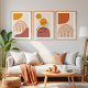 "Bringen Sie die Freiheit der abstrakten Kunst in Ihren Wohnraum mit diesem warmen Boho-Set. Minimalistische Linien in Verbindung mit neutralen Erdtönen rufen ein Gefühl von Ausgeglichenheit und Entspannung hervor. Die geometrischen Details, Bögen und Punkte sind harmonisch angeordnet, scharf auf hochwertigem Material gedruckt. Die Gemälde sind in verschiedenen Größen erhältlich, sodass sie entweder individuell aufgehängt oder in einem Set von 3 miteinander kombiniert werden können. Ideal für die Dekoration eines Wohnzimmers, Schlafzimmers oder kreativen Studios - dieses Set verwandelt jede Wand in ein stilvolles künstlerisches Highlight."