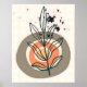Eine beeindruckende Abbildung zeigt ein Blatt vor einem Hintergrund lebendiger kreisförmiger Formen in Orange- und Grautönen, die einen modernen künstlerischen Stil verkörpern.