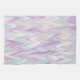 Ein abstraktes Zickzack Design in einer lila, türkisfarbenen, Elfenbein- und Weißpalette.