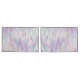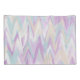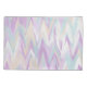 Ein abstraktes Zickzack Design in einer lila, türkisfarbenen, Elfenbein- und Weißpalette.