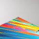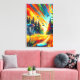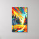 Farbenfrohe abstrakte Disc Golf zum Thema ai art Bird fliegen in den Himmel, hohe Kiefern, Herbst Farben und Scheiben fliegen überall hin zu einem Disc Golf Button.