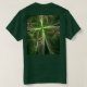 T - Shirt abstrakten Linien grüne Klee formen digitale Arbeit, die grüne Farbtöne verwendet und kompliziert zeichnend im Vordergrund. Das Design besteht aus dünnen, hellen Linien, die miteinander verbunden sind und eine seltsame vier Blätter Kleeblatt Form verleihen. Die gesamte Komposition ist mit einem Lichtschacht im Hintergrund geschmückt und schafft insgesamt ein schönes, faszinierendes und ansprechendes surrealistisches Bild. Das Kunstwerk ist ein Fraktal, das mit einem der besten Fraktal-Hersteller von heute erstellt wurde, daher haben die Linien eine algorithmische Symmetrie, die hilft, das endgültige Design und Eindruck.