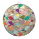 Ein Konfetti-Wandteppich aus Farben bildet dieses abstrakte Design. Hintergrund in blassgoldener Folie.