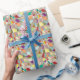 Ein Konfetti-Wandteppich aus Farben bildet dieses abstrakte Design. Hintergrund in blassgoldener Folie.