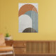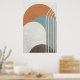 Abstrakte Boho Regenbogenwandkunst mit braunen, beigen, orangefarbenen und blauen Gewölben. Dieses Design hat auch einen Lichtfilter über das gesamte Stück und schafft so ein Vintages Gefühl. Ein schlichter und moderner Stil mit klassischem Ambiente.