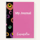 Abstrakte Punkte in vielen Farben auf der Rückseite, wobei sich ein Teil dieses Designs auf der Vorderseite des Journals überlagert, mit einem rosa Hintergrund und den Wörtern "My Journal" und "YOUR NAME" auch auf der Vorderseite - alle änderbar, um Ihren Geschmack zu Anzug. Erhältlich in vielen verschiedenen Größen, mit der Wahl der Spiralfarbe und der Art der Seiten, die Sie gewollt haben (gestrichen, leer, usw.)