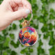 Abstrakte Blumenkunst Orange Blue Blumen Premium Runder Schlüsselanhänger