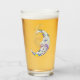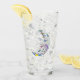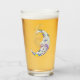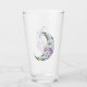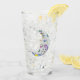 Dieser Glaswäscher für Getränke hat einen feinen, halbmondfarbenen Mond, der mit farbigen abstrakten Formen wie Kreise, Dreiecke und einem blauen, gelben und lila Scroll mit blauen Augen auf der Vorder- und Rückseite dekoriert ist.