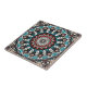Genießen Sie dieses farbenfrohe abstrakte digitale Kunstwerk eines kreisförmigen Mandala-Designs mit komplexen Formen.