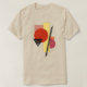 Ein schwarzes Dreieck, unterteilt in Segmente, ein schwarzes trapezförmiges Band, unterteilt in zwei, ein roter Kreis, ein gelbes Rechteck, ein blassrotes Quadrat, ein violetter Kreis und ein orangefarbenes Quadrat in dieser abstrakten Kunst überlappender Formen von Richard H. Fay.