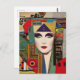 Abstrakte Frauengesicht farbenfrohe Collage Postkarte