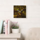 Abstrakte gekrümmte Bänder in goldgrün und dunkels Quadratische Wanduhr