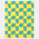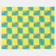 Ein ursprünglich abstraktes geometrisches Muster in Zitronengelb, Türkis und Orange.