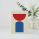 Ein abstraktes modernes, minimalistisches Design in roten und blauen geometrischen Formen auf beigem Hintergrund.