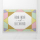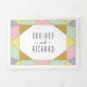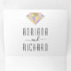 Abstrakter geometrischer Diamantenschmuck moderne dreiseitige Hochzeitseinladung. Dieses moderne Hochzeitsladen zeigt einen Rahmen aus Dreiecken in hellrosa, minzgrün, hellgelb, lila und gold mit einem weißen Rahmen auf dem Cover und einem Diamant auf der Innenseite zuerst und die äußeren letzten Paneele. Es gibt auch ein Foto des Ehepaares auf der äußeren Mitteltafel mit Ihren Initialen und es hat viel Platz für Ihre Hochzeitsdetails.