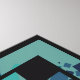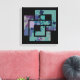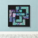 Cooles künstlerisches Design mit allen möglichen Farben und Größen von Quadraten, die herum schweben. Ein schwarzes quadratisches Labyrinth, keltischer Stil Knoten schafft ein interessantes Randdesign in diesem Stück. Die Farben in diesem Design sind gedämpft und subtil in verschiedenen Farbtönen lila und grün.