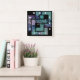 Cooles künstlerisches Design mit allen möglichen Farben und Größen von Quadraten, die herum schweben. Ein schwarzes quadratisches Labyrinth, keltischer Stil Knoten schafft ein interessantes Randdesign in diesem Stück. Die Farben in diesem Design sind gedämpft und subtil in verschiedenen Farbtönen lila und grün.