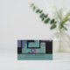 Cooles künstlerisches Design mit allen möglichen Farben und Größen von Quadraten, die herum schweben. Ein schwarzes quadratisches Labyrinth, keltischer Stil Knoten schafft ein interessantes Randdesign in diesem Stück. Die Farben in diesem Design sind gedämpft und subtil in verschiedenen Farbtönen lila und grün. Modernes Design für Visitenkarten.