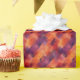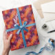 Mit diesem gefallenen Papier mit abstrakten, warmen, roten, gelben und lila Elementen verwöhnen Sie Ihre Geschenke stilvoll. Ideal für Herbst- oder Familienfeiern.