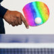 Abstrakte Aquarellfarben gestrichene Streifen Regenbogen.
