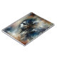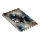 Aus einem Hintergrund abstrakter Formen und Pinselstriche in verschiedenen Farbtönen entsteht eine Profilansicht einer weiblichen Figur