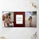 Elegantes Statement-Urlaubsprojekt mit Single-Foto-Vorlage in goldgelber, himmlischer Textur-Rahmen auf einem dunkelweihnachtlich-roten Kunsthandwerkshintergrund mit abstraktem Pinselstrich von Glitzern mit Glitzer mit bearbeitbaren Textfeldern. Die Panels verfügen über ein leeres Element mit goldenem Rahmen auf einem zusätzlichen roten Hintergrund mit Textfeldern und zusätzlichen Bildvorlagen.