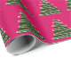 Abstrakte, grüne Bäume auf rosa Weihnachtsverpackungspapier.