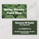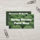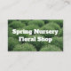 Ein abstraktes Bild grüner Büsche vor der Blüte schaffen einen einfachen Hintergrund auf diesen Visitenkarten, der einen Firmennamen hervorhebt. Die Rückseite dieser Karten sind eine solide Farbe mit viel Platz für alle wichtigen Informationen.