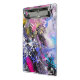 Eine wunderschöne, grobkörnige Mischung aus Farbstichen, Spritzern und Markierungen in einer farbenfrohen Farbpalette aus lila, rosa, blau, grün, gelb, schwarz und weiß. Personalisieren Sie mit einem Initial.