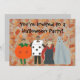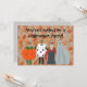 Auf Partyeinladungen wird die Malerei von vier Kindern in Kürbiskostümen, Würfeln, Cowgirl und Geist auf grauem und orangefarbenem abstraktem Hintergrund gedruckt. Die Gruppendetails können im Vorlagenformular ausgefüllt werden.