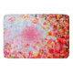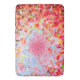 Abstrakte Herbstblätter und Himmel sind ein Originalgemälde. Warme Rot-, Orange- und Gelbspritzen, wenn blattförmige Farbe gegen einen strukturierten blass blauen Himmel und rosa Sonne.
