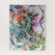 farbenfrohe Kunst Hexagons abstrakt Orange, Pink, Blau und Grüntöne - aus Alkoholink Kunst.