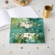 Abstraktes Watercolor Malachite Gold Weiße Blume Kartendesign. Es verfügt über eine wunderschöne Aquarellfarbe weiß, cremefarbene Blume, Imitate goldgestelle Rahmen, auf einem abstrakten Aquarellmalachit mit goldenem Hintergrund. Auf der Rückseite weiße Blume Kranz und Initialen. Verwenden Sie das Tool Personalisieren, um Ihre Informationen hinzuzufügen. Für passende Artikel besuchen Sie bitte meine Malachite Gold Collection.