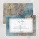 Diese Hochzeitsempfangskarte zeichnet sich durch einen abstrakten, blauen und goldfarbenen Strand und einen Wasserhintergrund aus. Der Text in einem weichen Spray-Textkasten ist verschwommen. Das Hotel ist modern und einzigartig und eignet sich ideal für eine Hochzeit am Strand oder am Wasser. Es wurde von Simply Farmhouse Press entworfen und ist Teil der Modern Beach Abstrakt Wedding Suite.