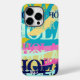 Hola Text wiederholt sich in einer farbenfrohen Palette von Blau, Gelb, Rosa, Türkis und Grün.