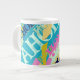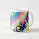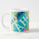 Hola Text wiederholt sich in einer farbenfrohen Palette von Blau, Gelb, Rosa, Türkis und Grün.