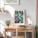 Wasserfarbe Abstrakte Hummingbird Wall Art, un krankño con un acabado estilo acuarela abstracto de colibries, un poster para deco esos espacios speciales de tu hogar, con colores alegres para hacer resaltar esa pared de tu hogar.