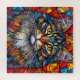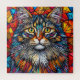 Abstrakte Darstellung einer Katze mit lebhaften Farben und geometrischen Formen, die eine auffallende künstlerische Komposition schafft. Ideal für kreative Projekte, digitale Kunstwerke und Felindesign.