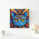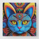 Abstrakte Katze mit gelben Augen Quadratische Wanduhr