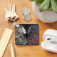 Zwei Katzengesichter, eine weiße und eine schwarze, stehen sich gegenüber. Jede Katze ist mit komplizierten, wirbelnden Mustern geschmückt, die ein dynamisches und fließendes Aussehen erzeugen. Der Hintergrund ist dunkel und hebt den Kontrast zwischen den hellen und dunklen Katzen und ihren dekorativen Elementen hervor.